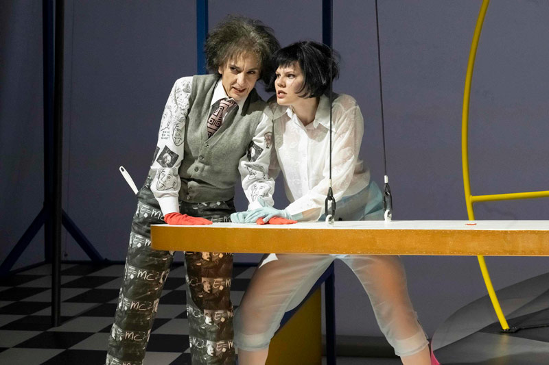 Eine Mordserie im Irrenhaus, aber Kommissar Voß hat leichtes Spiel, denn die Täter sind schnell unter den Patienten gefunden. Klinikchefin Doktor Mathilde von Zahnd ist jedoch untröstlich, als behandelnde Ärztin bescheinigt sie den geistesverwirrten Patienten, die sich als Physiker ausgeben, Unzurechnungsfähigkeit. Doch sind die Patienten wirklich, was sie vorgeben zu sein? Welches Geheimnis hüten die drei? Der vermeintlich einfache Fall wird immer komplizierter. Und schon geschieht ein weiterer Mord. Was als komödiantischer Krimi beginnt, entwickelt sich zu einer Groteske mit rabenschwarzem Humor. Vor dem Hintergrund des Kalten Krieges und der atomaren Bedrohung hat Dürrenmatt 1962 ein Meisterwerk geschrieben, das aus literarischen ebenso wie politischen Gründen zum dramatischen Dauerbrenner geworden ist. „Der Inhalt der Physik geht die Physiker an, die Auswirkung alle Menschen. Was alle angeht, können nur alle lösen.“ — Friedrich Dürrenmatt, 21 Punkte zu den ‚Physikern‘